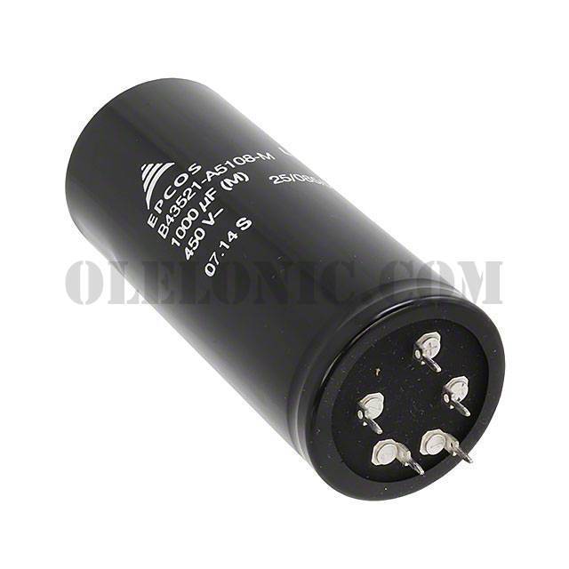 EPCOS (TDK), 1000µF 450V Aluminum Electrolytic Capacitors Radial, Can - Snap-In - 5 Lead 160mOhm @ 100Hz 12000 Hrs @ 85°C, B43521